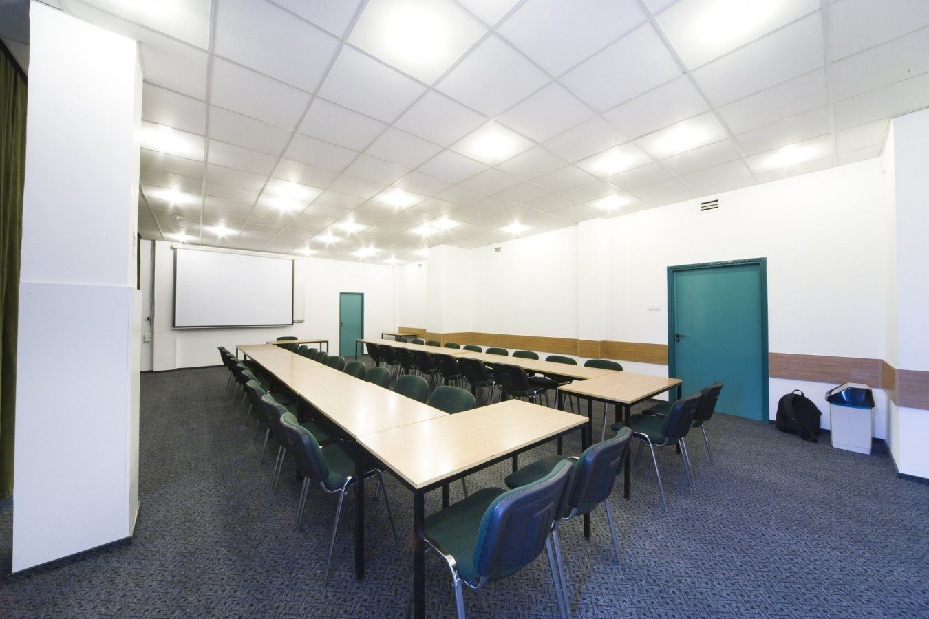 магчымасць любога размяшчэння пакояў, якая забяспечвае прастату выкладу і абмеркавання. Камфорт і прафесіяналізм абслугоўвання. Прымаем заказы на арганізацыю і абслугоўванне трэнінгаў і канферэнцый